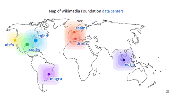 ウィキメディア財団は現在、世界中に点在する7つのデータセンター(コロケーションスペース)から、全てのプロジェクトのユーザートラフィックに対応しています。これらのデータセンターの所在地は、アメリカにサンフランシスコ、テキサス、バージニアの3カ所、ヨーロッパにフランス・マルセイユ、オランダ・アムステルダムの2カ所、南米にブラジル・サンパウロの1カ所、アジアにシンガポールの1カ所となっています。