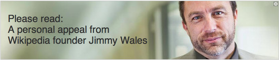 以下は実際にウィキペディアで表示された、共同創設者のジミー・ウェールズ氏が訴えかける寄付バナー。