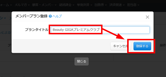 追加するメンバープランの名称を入力して「登録する」をクリック。