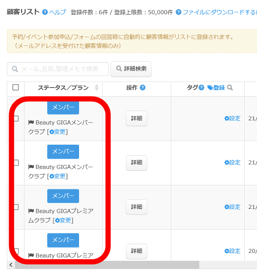 管理者は顧客リストから自由にメンバープランを設定することが可能。これまでの利用実績などに応じてメンバープランを変更し、プランごとの顧客リストを抽出したり、サービスの内容を調整したりすることができます。