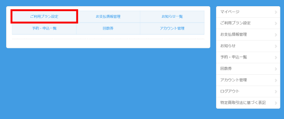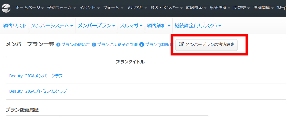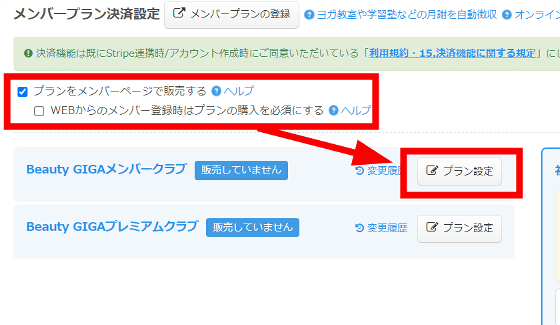 顧客がメンバーページからサブスクリプションプランを購入する場合は、「ご利用プラン設定」をクリック。