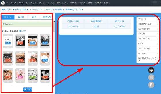 豊富なデザインテンプレートを使用したり、背景素材に実店舗やメニューの写真を使用したりして、メンバーページのデザインを店舗やサービスの雰囲気に合わせることができます。