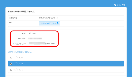 また、ログイン状態のメンバーが予約する際、必要項目が自動入力されるように設定して、予約時の手間を省くこともできます。予約時の手間を簡略化することにより顧客満足度を向上させ、リピート率を高めることが期待できるというわけです。