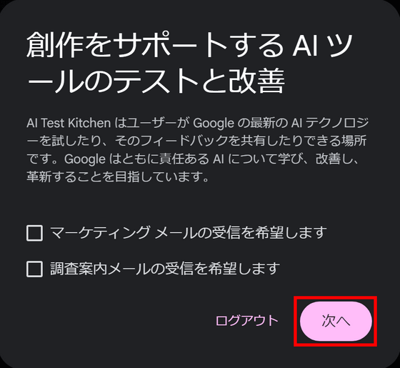 Imagen 3はGoogleの画像生成ツール「ImageFX」上で実際に試すことが可能です。サイトにアクセスし、右上の「Googleでログイン」をクリック。