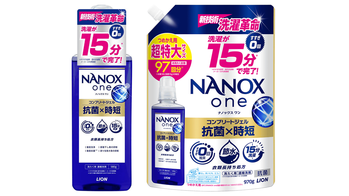 『NANOX』史上初!すすぎ0回で洗濯が15分で完了 衣料用洗剤『NANOX one(ナノックス ワン) 抗菌×時短』新発売|ニュースリリース|ニュースルーム | ライオン株式会社