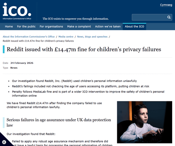 そして、2026年2月24日になってついにRedditに罰金を科すことを発表。ICOは「Redditが自己申告よりも強力な年齢確認メカニズムを導入しなかったため、13歳未満の児童の個人情報を処理する法的根拠がない」と言及し、これによりRedditがイギリスのオンライン安全法に違反したと主張しています。