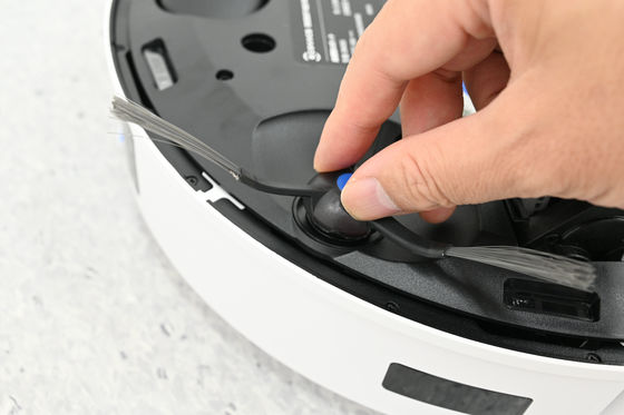 使用準備を行っていきます。まずは本体を裏返してサイドブラシを取り付けます。