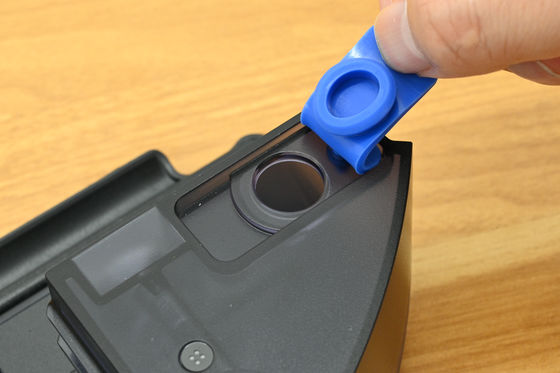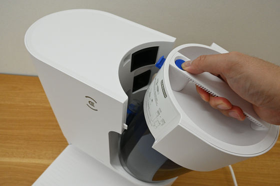 使用前にモジュール上部の水注入口を開けて給水します。タンク容量は180ml。