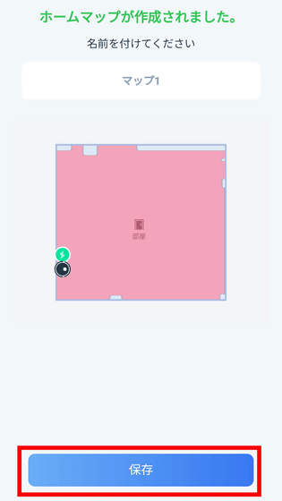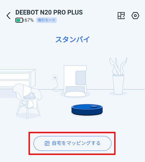 本体がスタンバイできたので、「自宅をマッピングする」をタップして部屋のマッピングをしてもらいます。