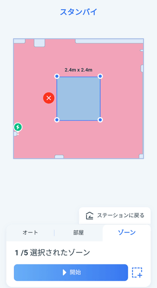 「ゾーン」はさらに細かく、1.0m×1.0m以上のカスタムエリアを掃除できます。