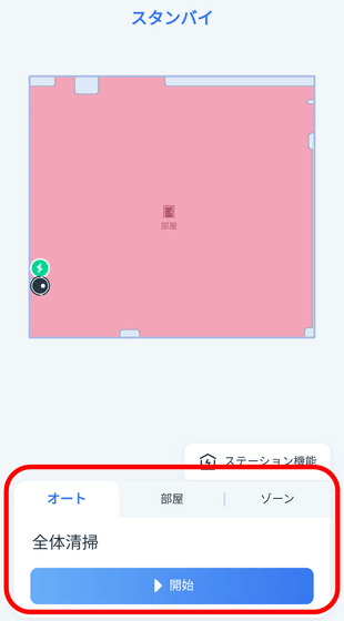 清掃は「オート」「部屋」「ゾーン」の3種類があります。