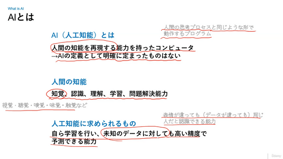「そもそもAIとは一体何なのか」という根本的な部分から解説が行われるため、AIについて初めて学ぶ人でも問題なく受講可能です。