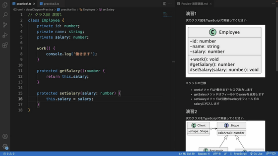 スライドでの講義の後、実際にTypeScriptを使用して実装を行うパートが用意されています。手を動かすことでしっかり理解を深められるというわけ。なお、TypeScriptについては特に説明が行われないため、TypeScriptを全く知らない場合はTypeScriptの入門講座を先に受講するのがオススメです。