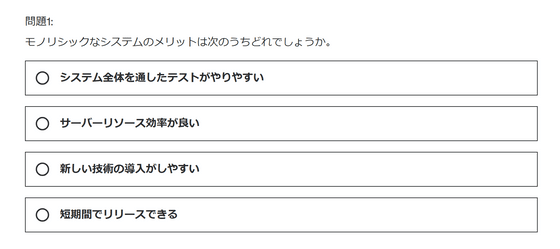 講座はマイクロサービスについての解説から始まりますが、従来の「モノリス」でのシステム開発について知っているという前提で進んでいきます。そのため、ある程度アプリケーションの開発経験を積んだ上で受講する方が理解が早いです。