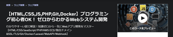 【HTML,CSS,JS,PHP,Git,Docker】プログラミング初心者OK! ゼロからわかるWebシステム開発 | Udemy