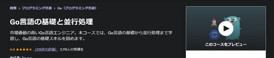 一気にGo言語について詳しくなれるため、Go言語の習得に興味がある人には受講してみて欲しい講座となっています。