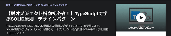【脱オブジェクト指向初心者!】TypeScriptで学ぶSOLID原則・デザインパターン | Udemy
