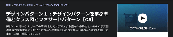 また講座ではオブジェクト指向における設計ノウハウの集大成とも言える「デザインパターン」についても詳しく解説されています。