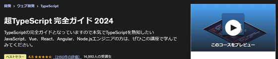 新年は心機一転新たな目標を立てて頑張るにはぴったりのタイミングです。新しいことに挑戦する時に役立つのがムービー形式で解説講座を受講できるオンライン学習プラットフォームの「Udemy」。1月10日(金)まで新年のビッグセール中となっており、対象講座が1講座1300円から受講できます。というわけで、新たな知識を身につけたり、スキルアップしたりするのに良さげな講座をピックアップしてみました。
