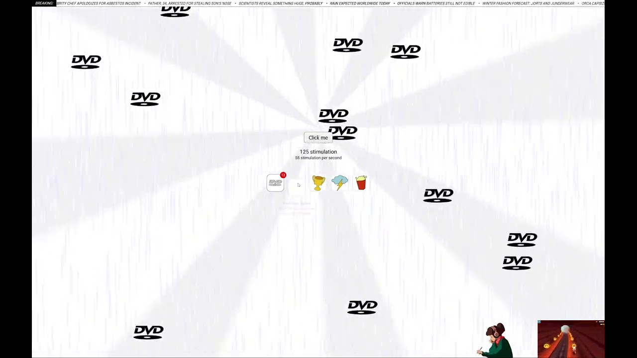 しばらくクリックし続けると、stimulationを増加させる要素が出現します。以下の「Bouncinvg DVD」はクリックするとstimulationを3つ消費して解放可能。