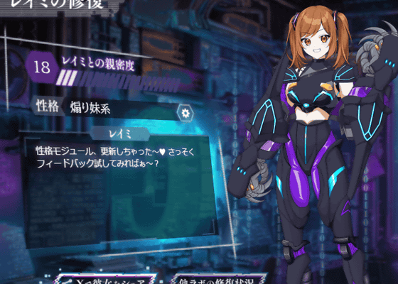 ゲットした「煽り系妹」の性格パーツを装着すると、レイミのセリフがまさに「煽り系妹」になりました。