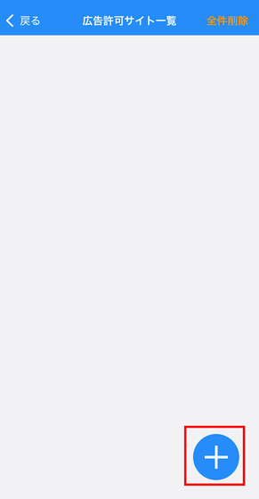 広告許可サイト一覧の右下にある「+」ボタンをタップ。