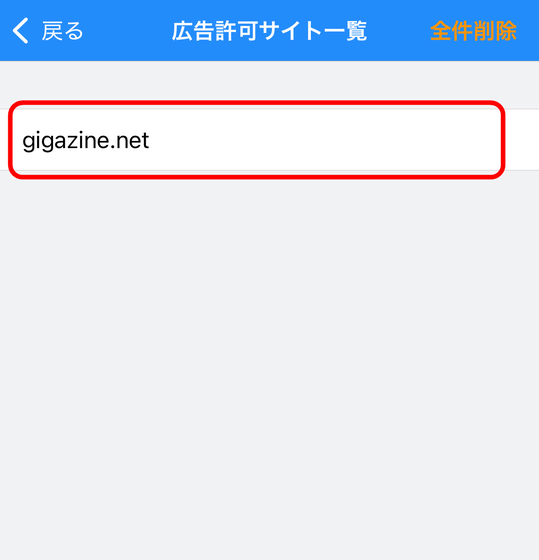 広告許可サイト一覧に追加されました。広告ブロックすると表示が崩れるサイトや、よく使うので広告を見て応援したいサイトがある場合は、広告許可サイト一覧に追加しておくことで、いちいちアプリから広告ブロックをオフにする必要がありません。