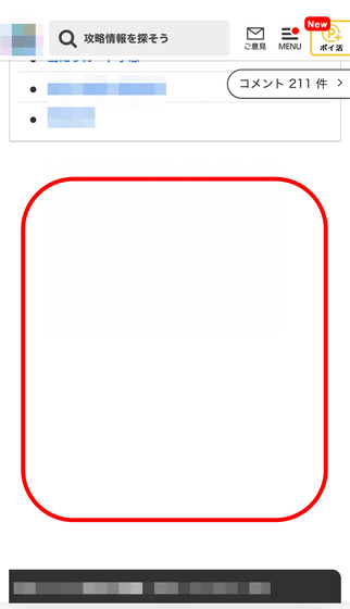 広告ブロックオンの状態で同じゲーム攻略系サイトの特定ページにアクセスしたところ、ポップアップ広告やバナー広告が消えたほか、コンテンツの間にあった広告は空白のスペースになっていました。
