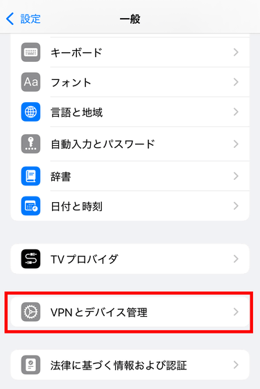 「VPNとデバイス管理」をタップ。