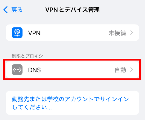 「DNS」をタップします。