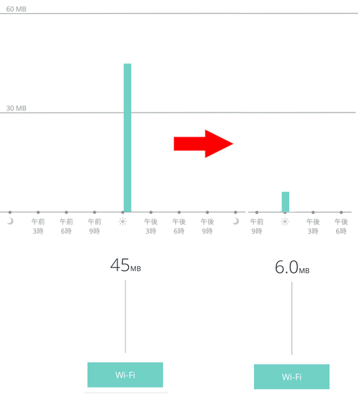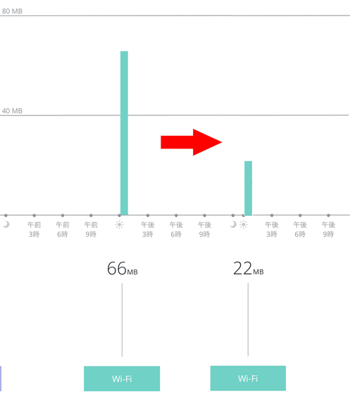 グラフのスケールを合わせて並べてみたところ、広告ブロックによっていかに通信量を削減できたかよくわかります。