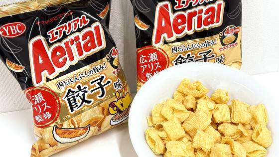 ヤマザキビスケット(YBC)のスナック菓子「エアリアル」に、女優の広瀬アリスさんが監修した新味「餃子味」が2026年2月9日(月)に登場しました。ジューシーな肉のうまみとにんにくの香ばしさがクセになる、焼きたて餃子の味わいをエアリアルで再現したとのことで、果たしてどんな味なのか気になったので実際に食べてみました。