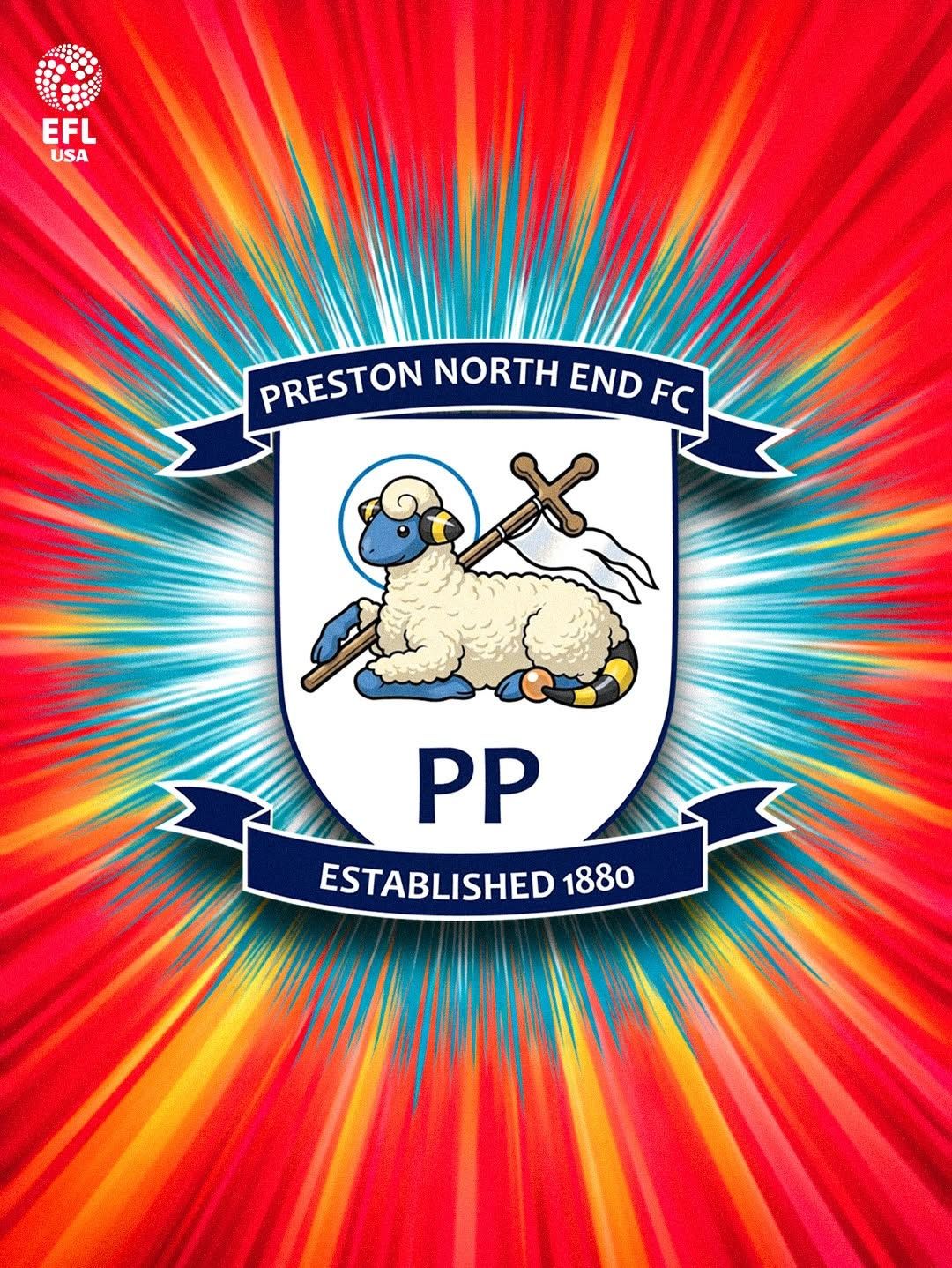 EFLの初代優勝チームであるプレストン・ノースエンドFCは、元エンブレムで羊が横たわっている部分にかなり首の長いスラッとした頭身の「メリープ」が描かれています。