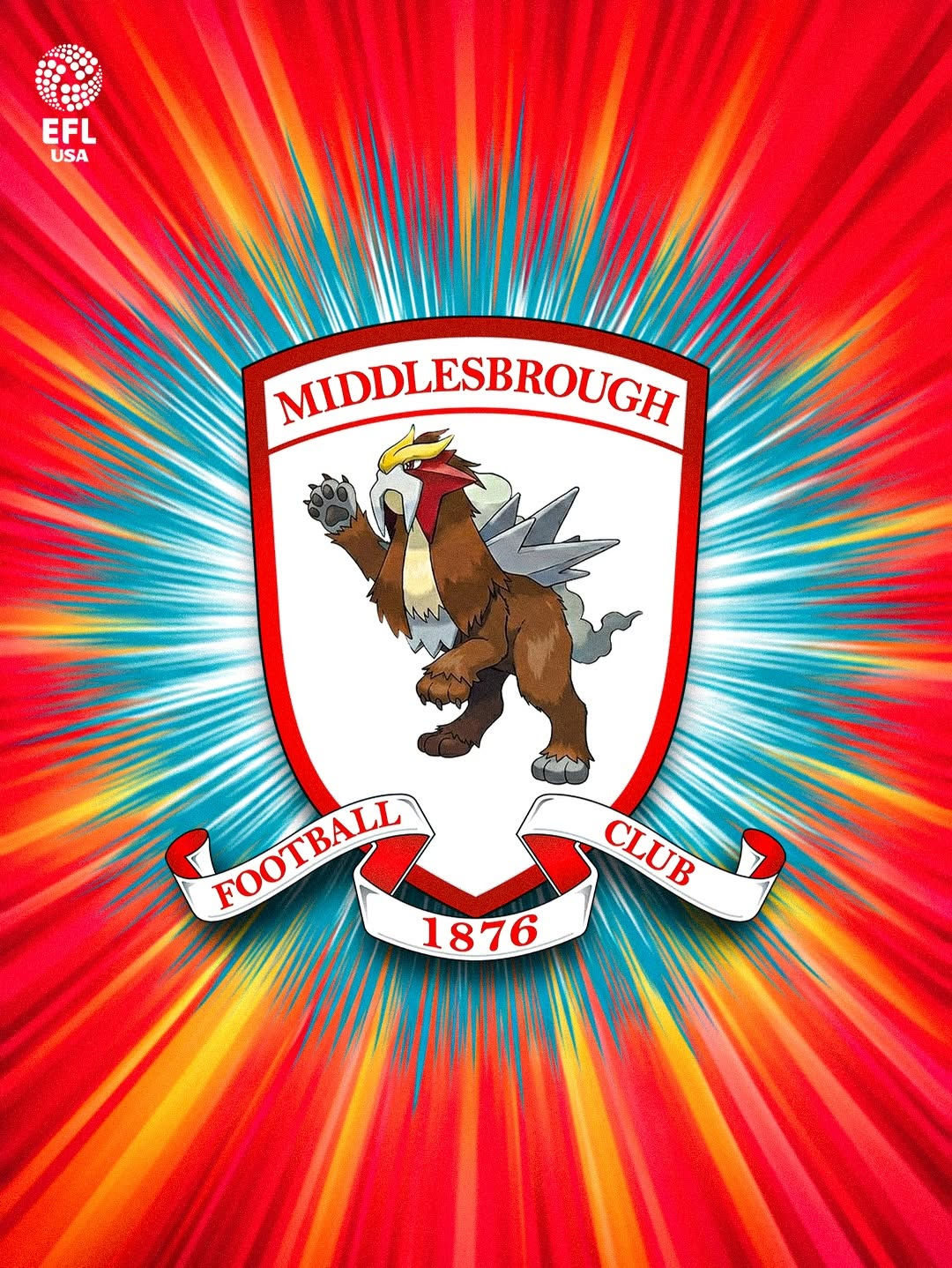 赤いライオンが描かれたエンブレムが特徴のミドルズブラFCは、伝説のポケモンである「エンテイ」をモチーフとしています。