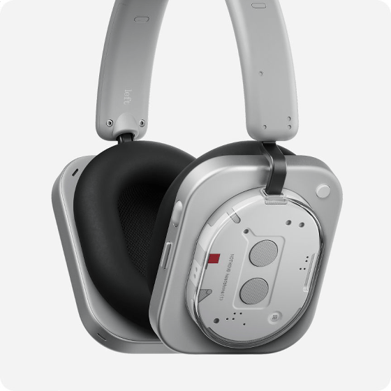 Headphone (1)は音響機器メーカーのKEFと共同開発されたワイヤレスヘッドホンで、四角いハウジング部に40mmのダイナミックドライバーが詰め込まれています。また、AIを用いて通話時のノイズを抑制する機能も搭載しています。