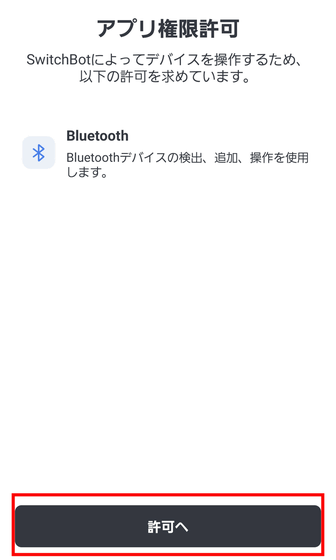 権限の許可が求められるので「許可へ」をタップします。