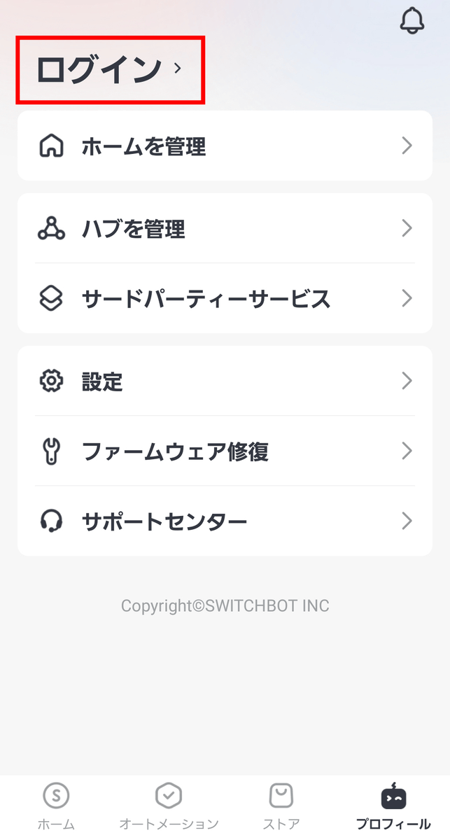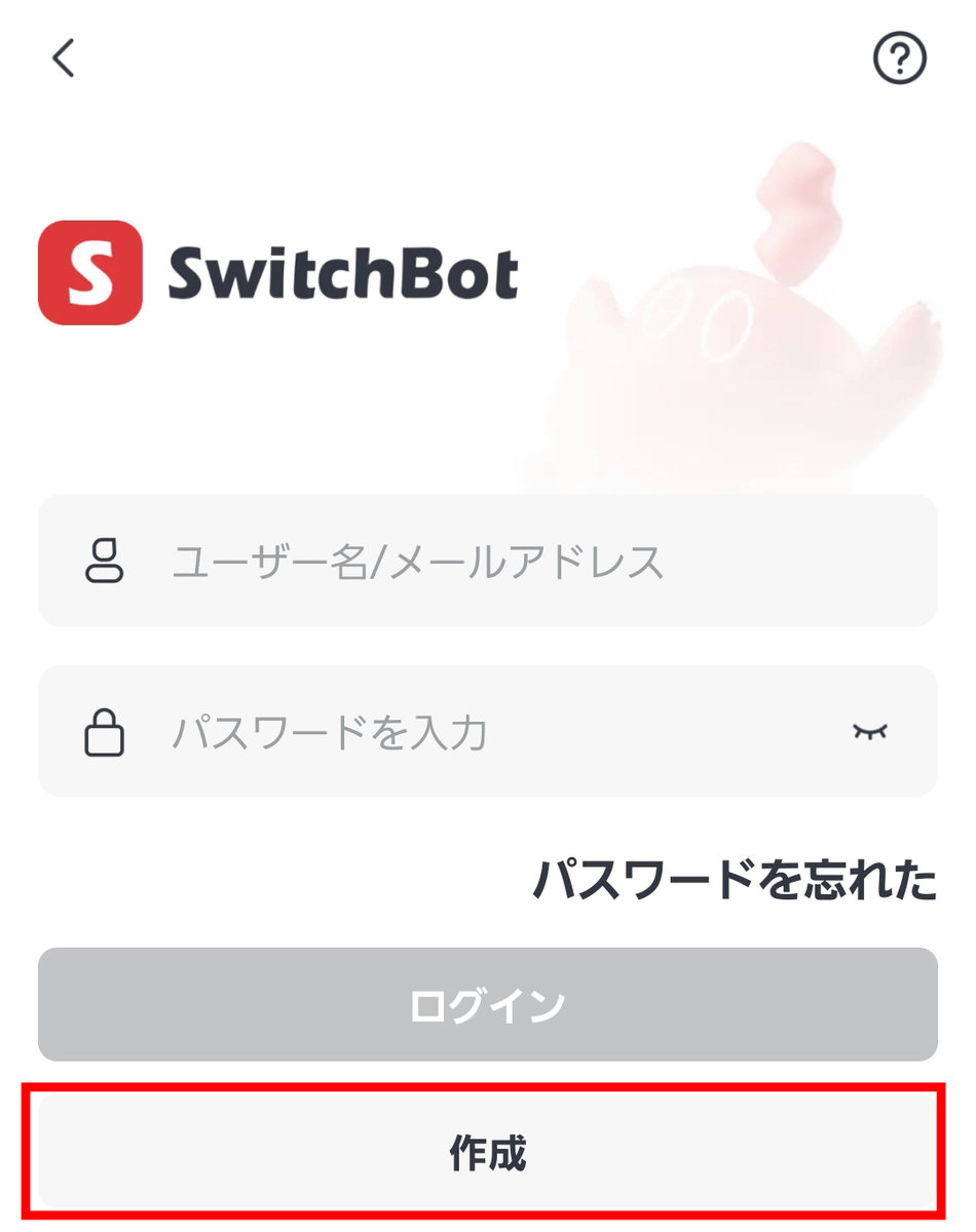 「作成」をタップしてSwitchBotアカウントを作成。