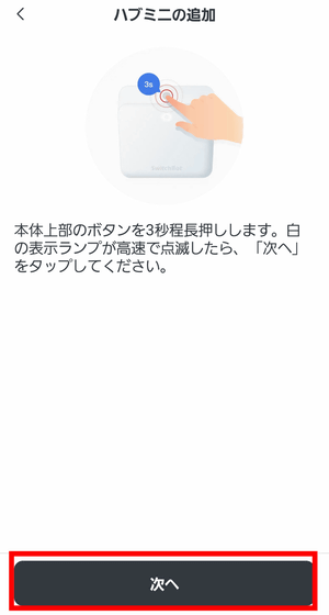 ハブミニ 木目調を接続状態にしたら「次へ」をタップ。