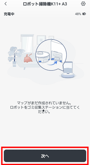 アプリとの連携が完了したら、ロボット掃除機が掃除する部屋の「マップ」を認識させる必要があります。