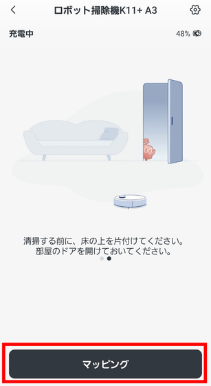 家具以外のものを片付けたら「マッピング」をタップしてマップ作成開始。