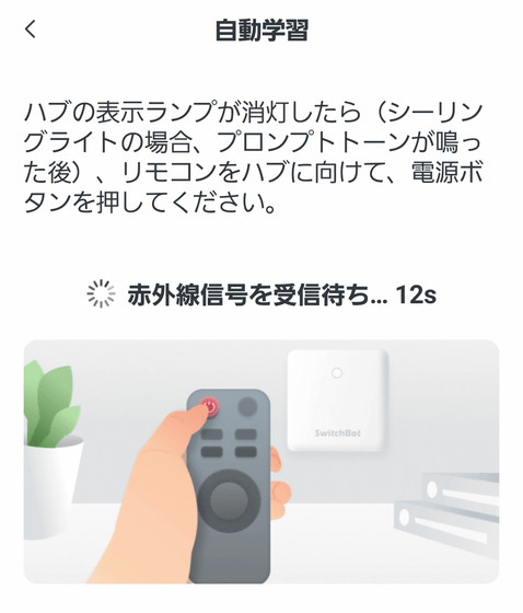 「赤外線信号を受信待ち」となったらアプリの操作はOK。