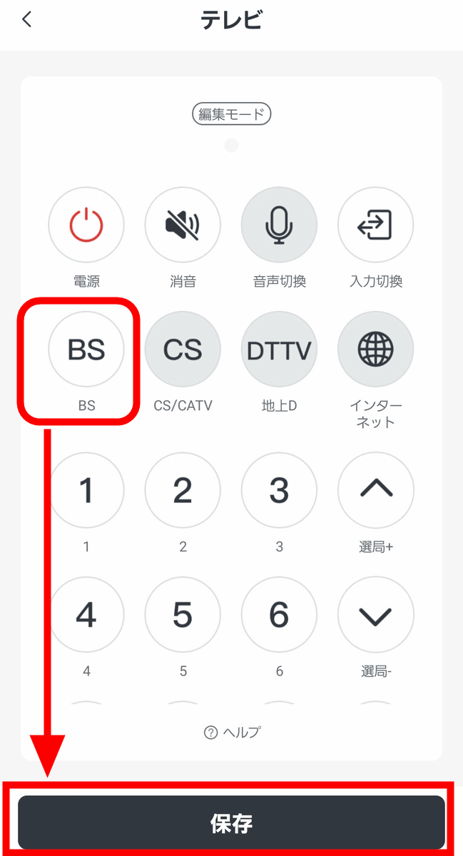 これで、グレーアウトしていた「BS」ボタンが使えるようになりました。「保存」をタップして設定完了。その他のボタンも同様の手順を踏めば、ハブミニ 木目調に登録することが可能です。