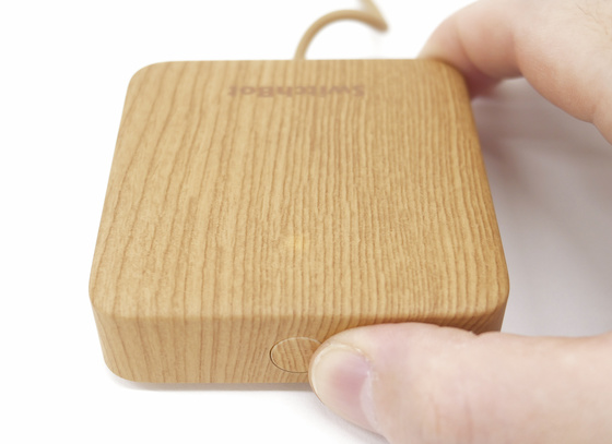 ハブミニ 木目調の本体サイズは高さ65mm、幅65mm、厚さ20mmと超コンパクト。