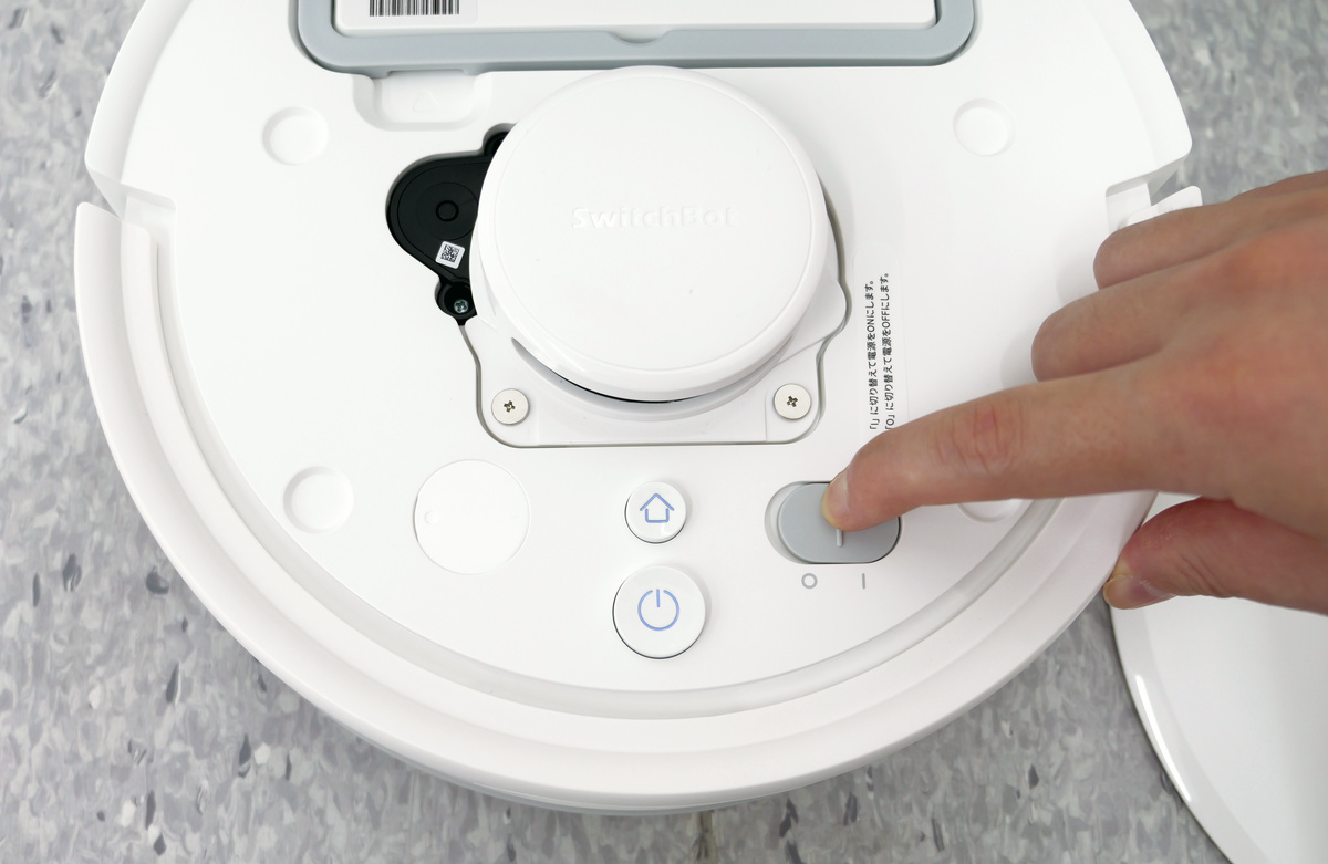 天面のフタを取り外すと、本体の電源スイッチが露出します。また、ダストボックス側は取っ手のようになっており、持ち上げるだけで軽く取り外すことができるため、誤って捨てたくないものを吸い込んでしまった場合などに対処が簡単です。