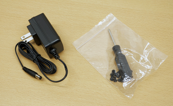 電源アダプターと、ドライバーやネジ類。