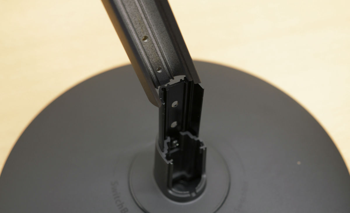 スタンドの溝に支柱をはめ込むようにして挿入。