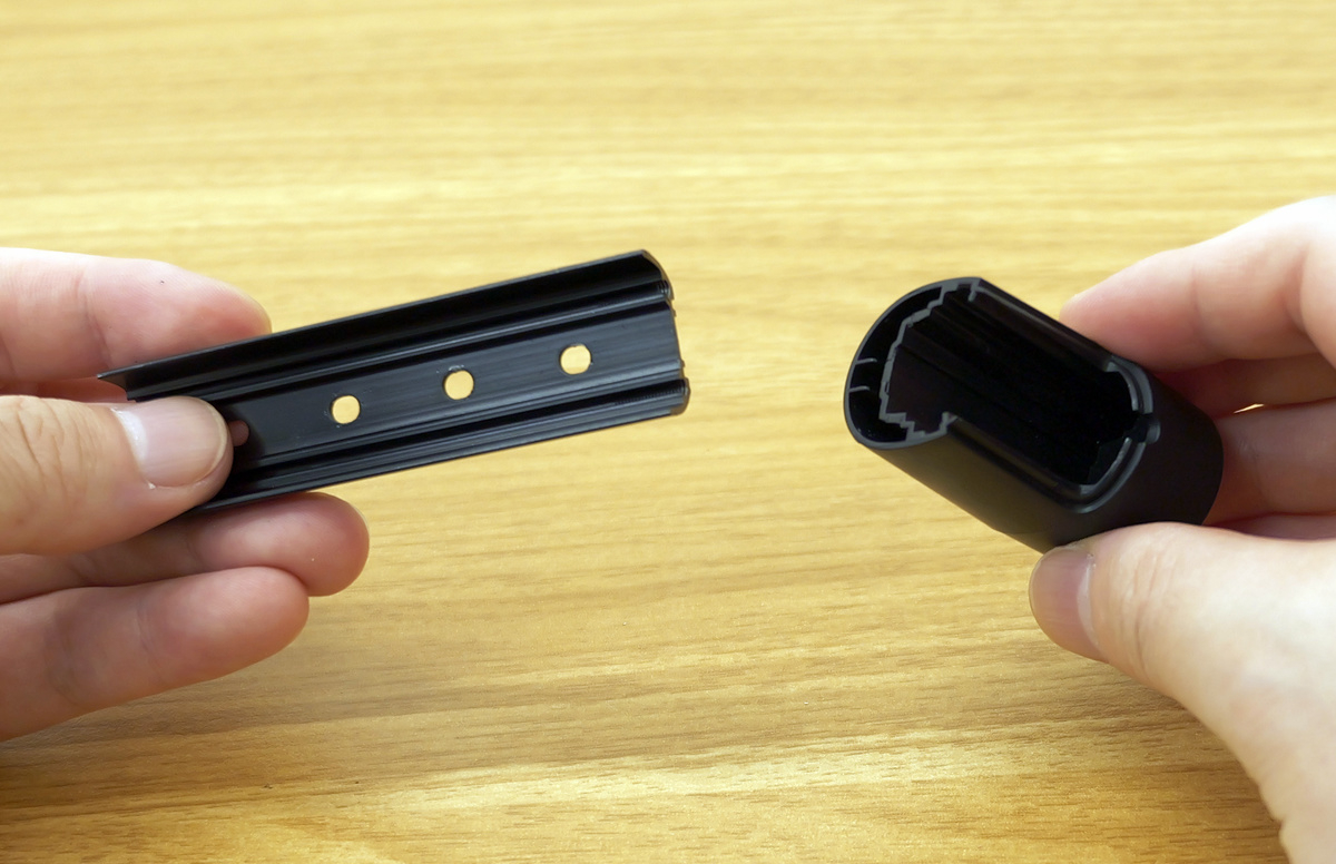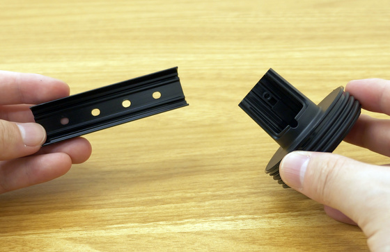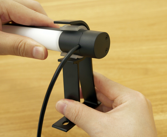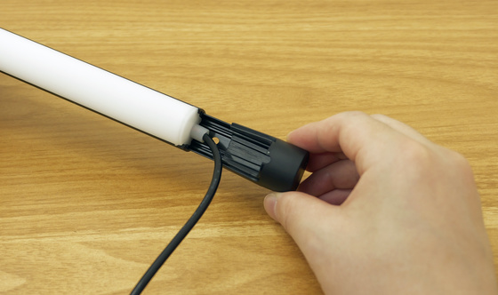 LEDライトはシリコン製でやわらかいため、支柱の溝に合うようねじ込んでいきます。