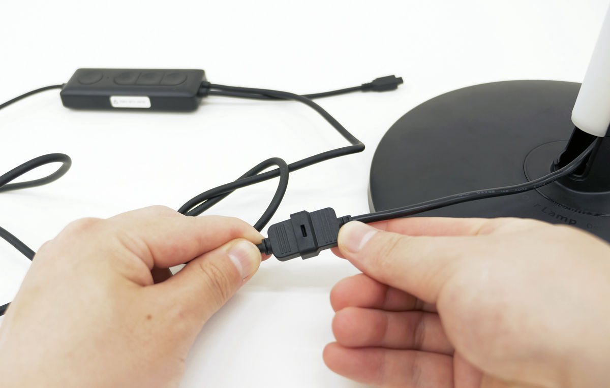 電源に接続するためには、まずライトのコードを有線コントローラーと接続。
