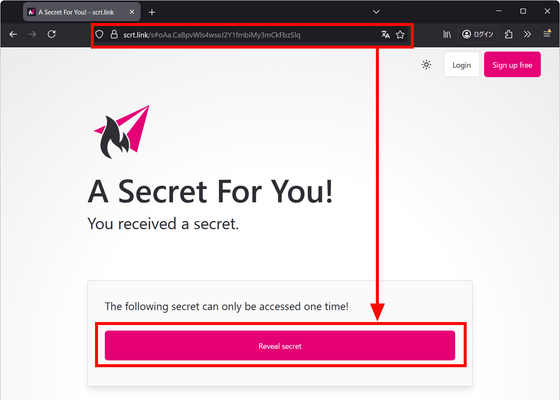 コピーしたURLにアクセスしたら「Reveal secret」をクリック。