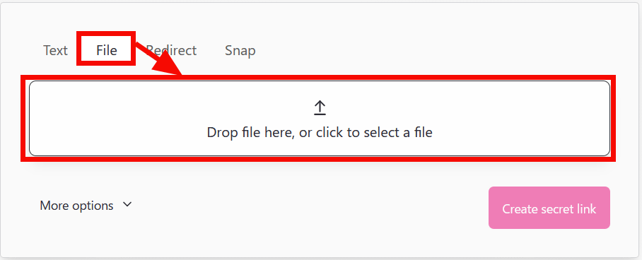 また、ファイルの共有も同じように行うことができます。「File」を選択して「Drop file here, or click to select a file」をクリック。